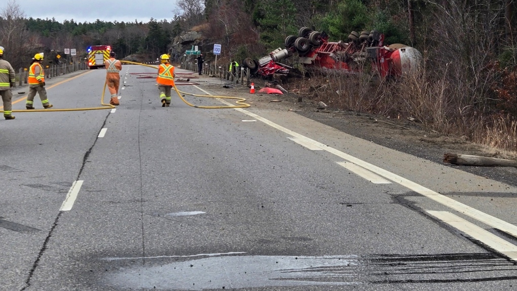 Provincial police say the single-vehicle rollover crash involving an empty propane supply truck occurred alongside the freeway close to Go House Lake.