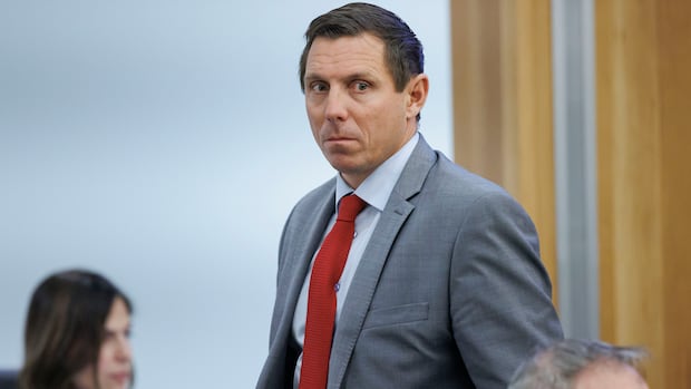 Green Party Leader Mike Schreiner is pictured during a debate between Ontario’s major party leaders in Toronto on Feb. 17, 2025. Schreiner says the province’s changes put homes, property and businesses at risk. (Alex Lupul/CBC)