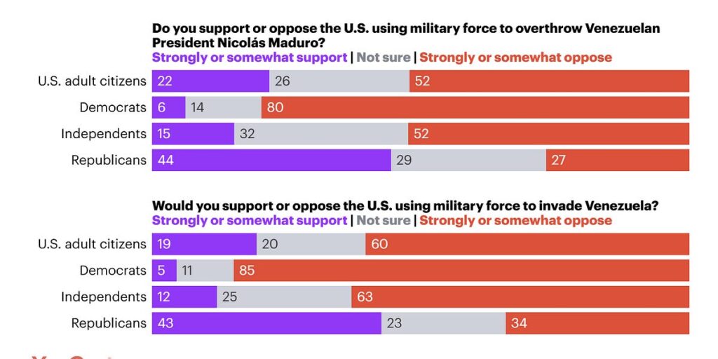 Surveys done by You Gov for The Economist just days prior to the intervention revealed clear majorities opposing military force to invade Venezuela or remove Maduro.
