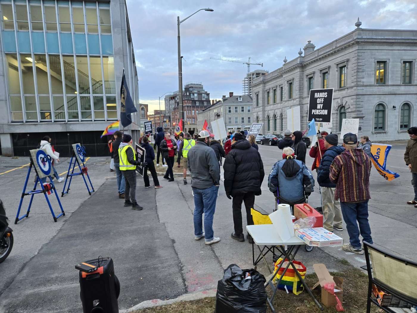 Striking postal workers, supporters from the community, and other local unions held a rally in front of Canada Post’s downtown Kingston location on Tuesday, Nov. 19, 2024, as strike action hit its fifth day.