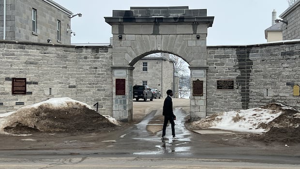 The main entrance of the Canadian Army Command and Staff College in Kingston, Ont., on Thursday. A Department of National Defence spokesperson said Col. Fraser Auld's removal as commandant of the college 'follows a loss of trust in his ability to command.' (Dan Taekema/CBC)
