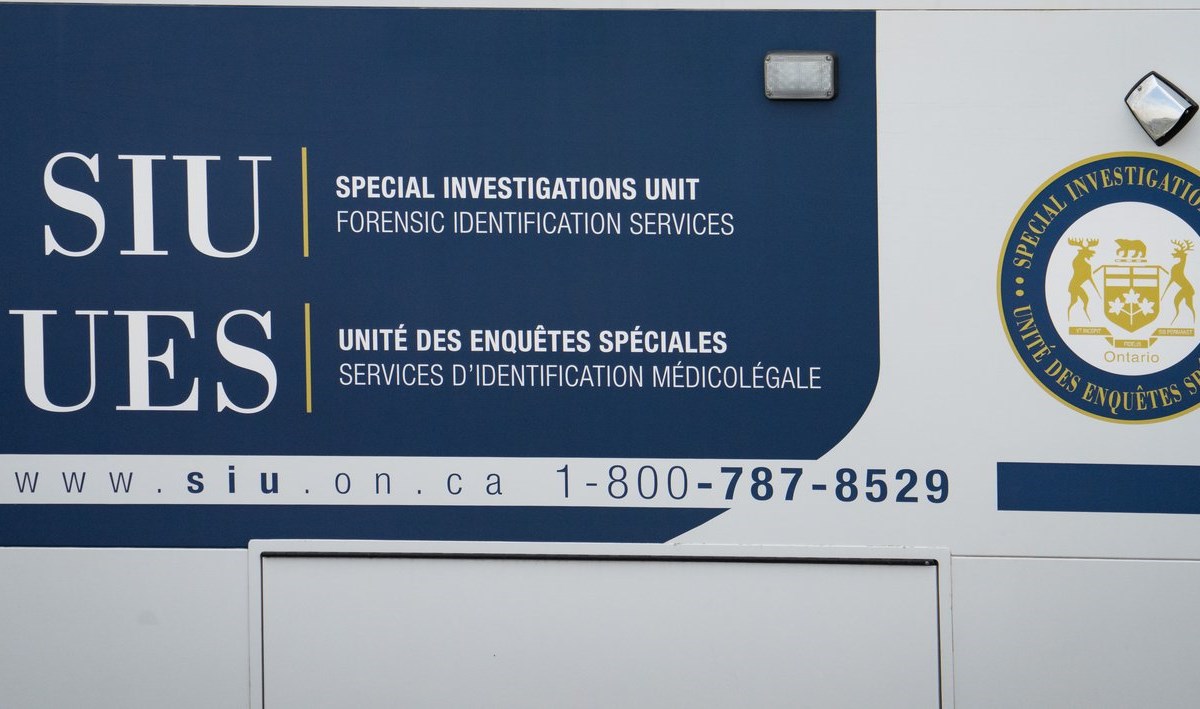 A Special Investigations Unit logo is seen on a truck at Toronto Pearson International Airport, in Mississauga, Ont., on April 24, 2025. THE CANADIAN PRESS/Arlyn McAdorey