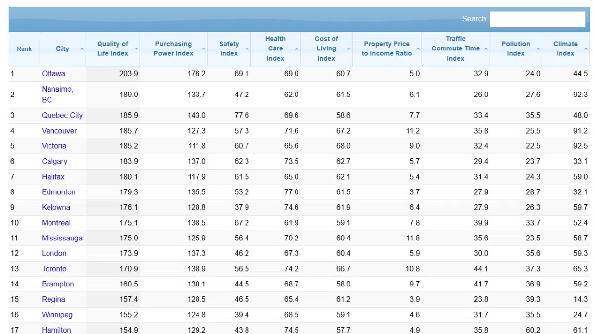 London, Ont., has been ranked as the second-best city in Ontario based on a quality-of-life index by a cost-of-living group. This index looked at factors like purchasing power, safety, health care, climate, living costs, property prices, traffic, and pollution.