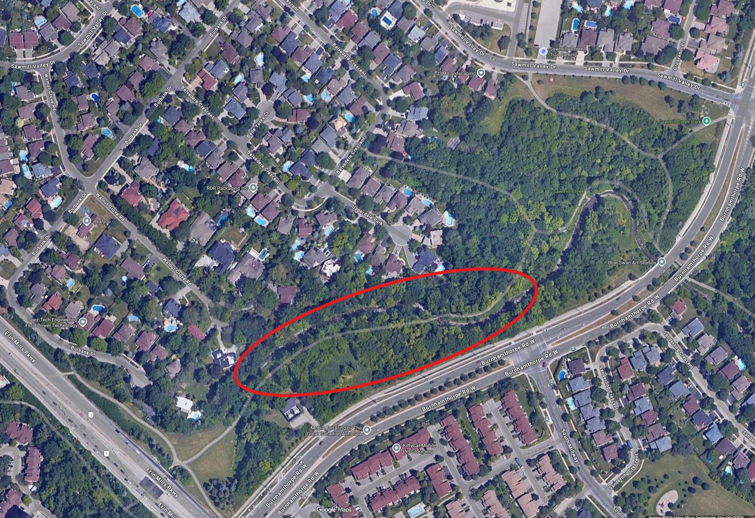 Sawmill Valley Trail (between Erin Mills Parkway and Sawmill Valley Drive, north of Burnhamthorpe Road W) is closed to the public until further notice. Flooding at Sawmill Valley Trail – March 11, 2026