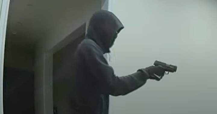 ![Click to play video: 'Video shows moment Ontario homeowner scared off four armed home invaders']()