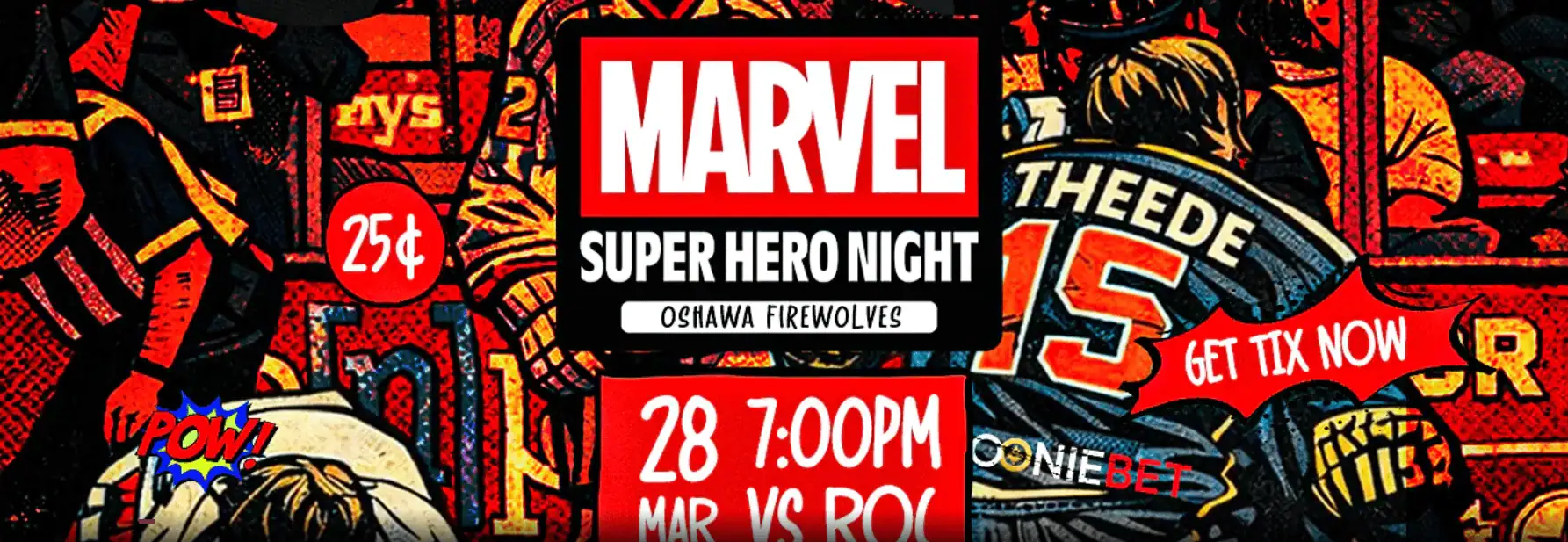 The players will don Deadpool-themed jerseys that will be auctioned off, and fans are encouraged to come dressed as their favorite super hero, with a contest for best costume.