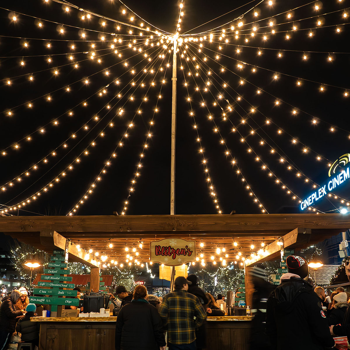 Where: Lansdowne Park When: November 21st – December 31st (Friday – Sunday, plus December 30th & 31st) Admission: Free The Ottawa Christmas Market is one of my absolute favorite holiday markets outside Europe! It reminds me so much of those charming Christmas markets in Germany. You’ll find rows of wooden chalets offering tasty food and drinks alongside unique gifts. The market’s atmosphere is enhanced by twinkling lights, beautiful decorations, and even a tunnel made of lights. There’s an ice skating rink, live musical performances, a giant Christmas tree, a pedal bar that seats 14 people, and much more. At Blitzen’s Bar right in the center of the market, you can enjoy both alcoholic and non-alcoholic beverages.By Ward Market Holiday Events