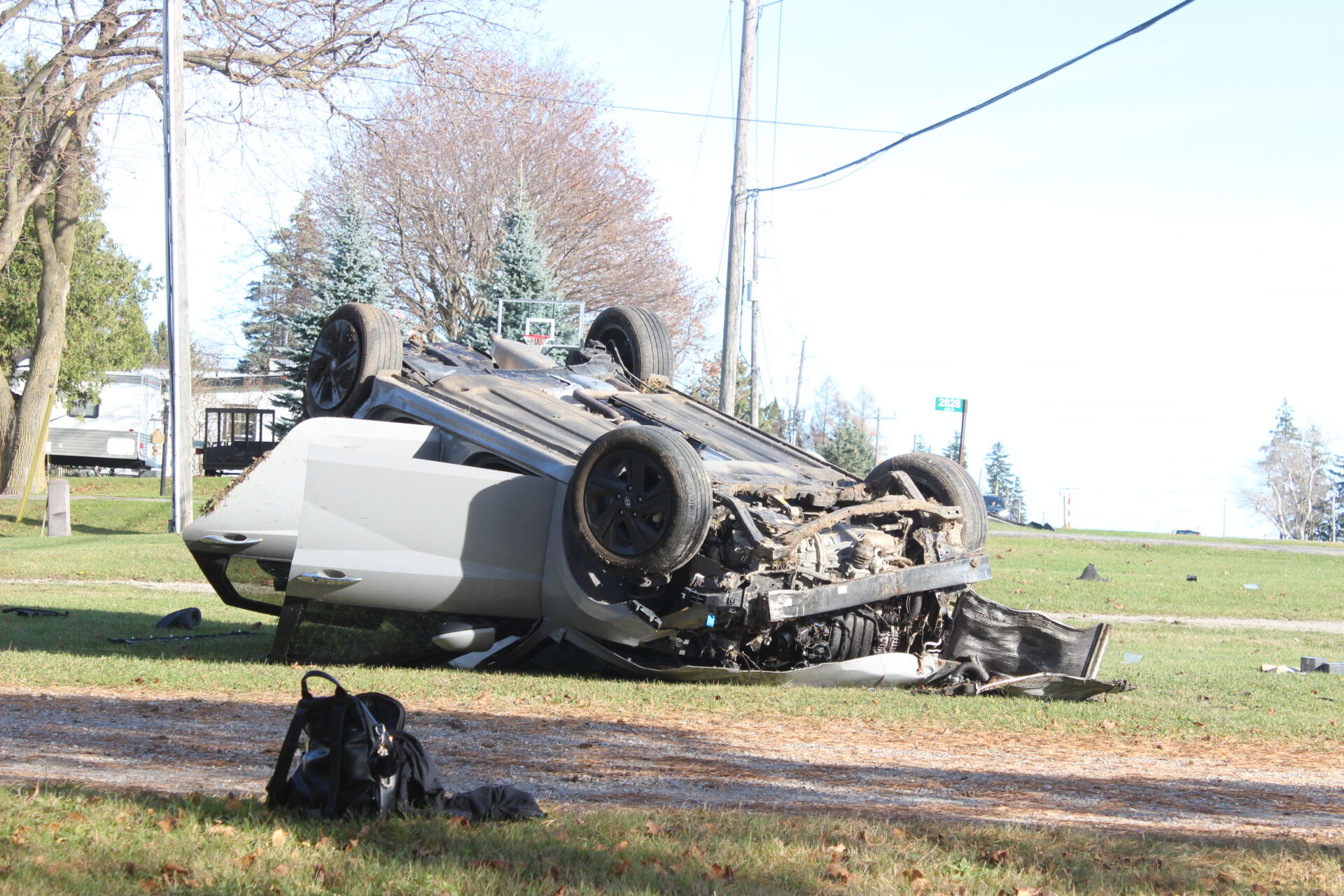 The collision concerned a single car, four-door, gray sedan, which flipped and got here to relaxation on its roof on the north facet of the street, simply east of the Signal Ontario Ltd. enterprise.