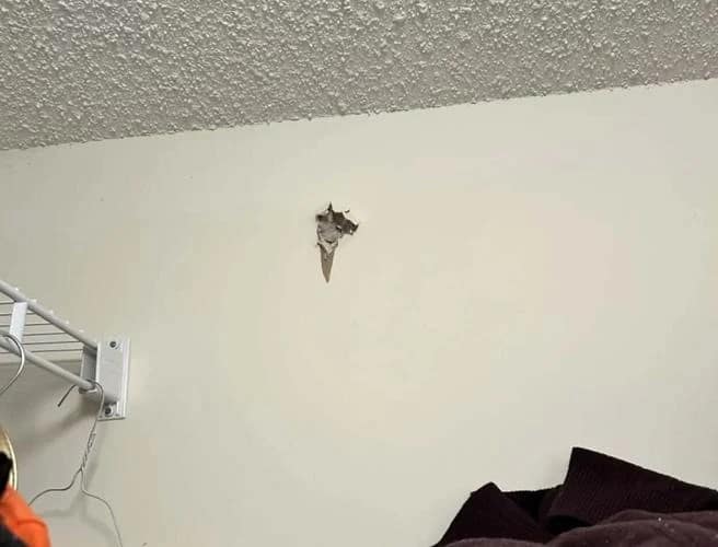 Photo showing bullet hole evidence documented post-event occurred during holiday celebrations reported thereafter! (Image sourced via homeowner submitted directly onto The )The cases involving both Mamers & Roger remain unresolved currently but inquiries sent forth yielded replies reiterating any additional comments could only revert back towards original statements issued previously until judicial outcomes unfold fully ahead first among them all!