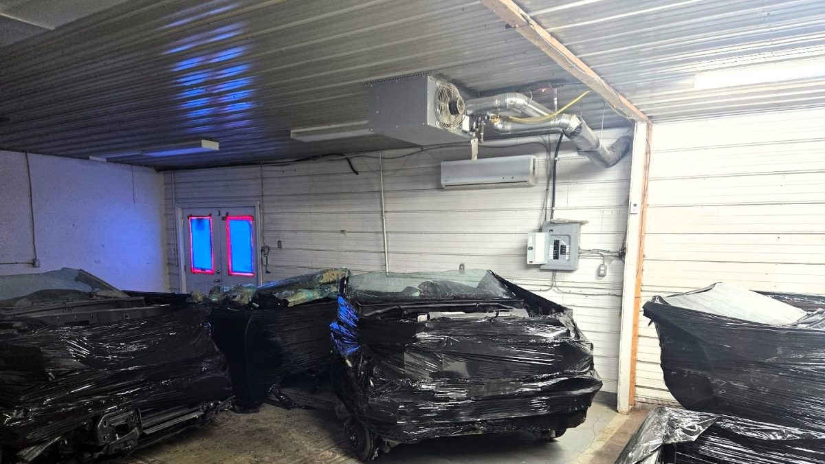 During the search, officers seized parts from at least 13 newer-model stolen vehicles, along with a forklift, various tools, and other items believed to belong to theft victims. They also uncovered several license plates thought to be from previously stolen vehicles located on-site.