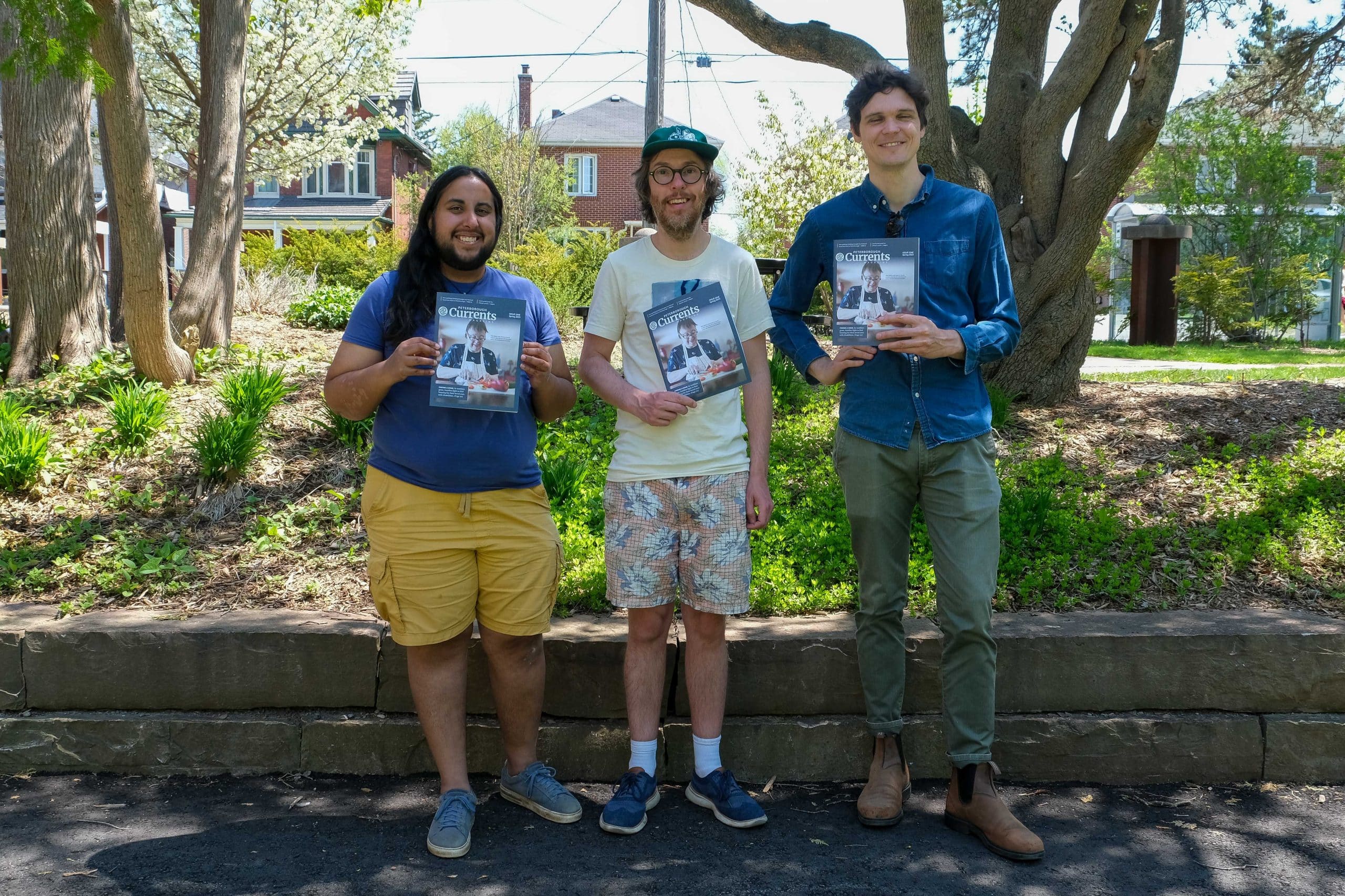 Currents team members Alex Karn, Will Pearson, and Brett Throop with copies of Currents’ first-ever print magazine. For more than five years, Peterborough Currents has provided detailed and community-focused journalism online. Now we’re excited to share our first print magazine as we celebrate our fifth anniversary this spring. You can now find the Peterborough Currents Magazine for free (or pay-what-you-can) at several local shops, including Take Cover Books (59 Hunter St E), The Food Shop (374 Water St), and Dreams of Beans Café (141 Charlotte St). This magazine showcases the same thoughtful reporting and engaging storytelling that you enjoy on our website. However, the print format allows for a slower and more reflective reading experience away from the distractions of the web. The cover story takes a close look at a crucial issue that’s often ignored in Peterborough and Ontario: housing difficulties faced by people with developmental disabilities. “Ontario’s supportive housing waitlist is longer than ever, putting highly vulnerable people in increasingly desperate situations,” writes Currents reporter Brett Throop in the feature article. But Throop’s piece doesn’t just highlight challenges; it also explores potential solutions. He visits a home in Peterborough’s west end where four women with developmental disabilities have lived safely and comfortably for over ten years. Additionally, he follows local families who started their own non-profit to raise funds for building a duplex for their daughters with disabilities. The second feature article comes from arts and community reporter Alex Karn. In “Mikey and Corm’s Sober Song,” Karn tracks the journeys of two well-known local musicians: Michael Cloud Duguay and Cormac Culkeen. The friends emerged from the “small, freaky incubator” that was Peterborough’s music scene in the late 2000s, but they faced challenges due to alcohol use that affected both their careers and friendship. Karn’s article shares how stopping drinking helped bring these musicians back to Peterborough -and rekindle their friendship. A collection of shorter articles, arts reviews, and community photos complete this 36-page magazine.
