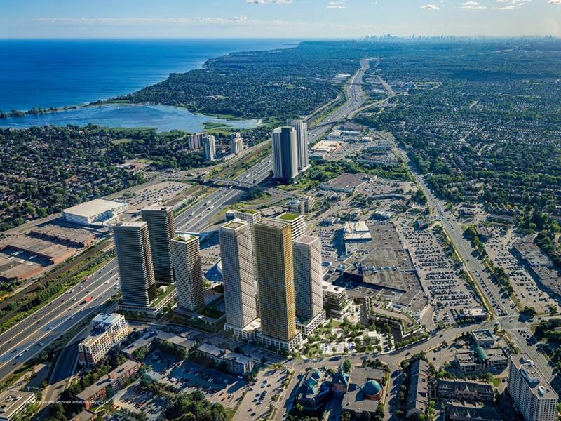 The website for Pickering City Centre indicates that this first development block will also see a third tower reaching 50 storeys with 550 units alongside another fourth tower standing 55 storeys tall with an additional 600 units. The latter will become the tallest building in town. “We always knew that it was going to take time to build out depending on market conditions,” Gascoyne said. “We’re going to own this long enough that I’m sure there’ll be fluctuations in market dynamics.” “Sales impact when you’re able to begin construction. If market conditions remain unchanged it’ll take longer; if they improve then we’ll adjust accordingly.” Centre Court might consider making those third and fourth towers purpose-built rental apartments according to Gascoyne’s comments; however no decision has been finalized yet. Once completed, Pickering City Centre aims to transform into a sprawling mixed-use community covering 55 acres with over 6,000 new homes spread across more than ten towers. The architectural vision laid out by Diamond Schmitt features an interconnected layout consisting of wide streets along with green spaces plus urban plazas linking all elements together seamlessly.Other Centre Court projects