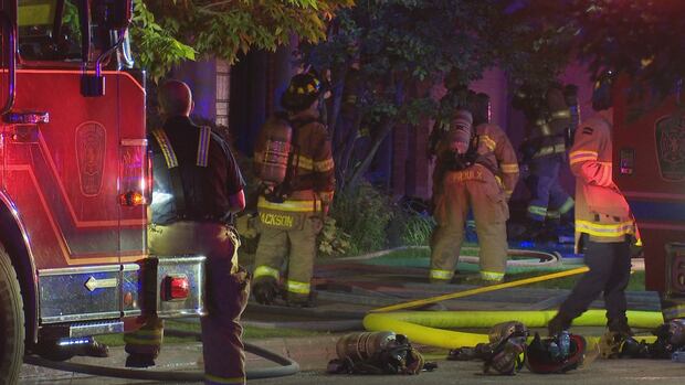 Firefighters on scene of a Richmond Hill fire on Monday, Sept. 1, 2025. (David Ritchie/CBC News)