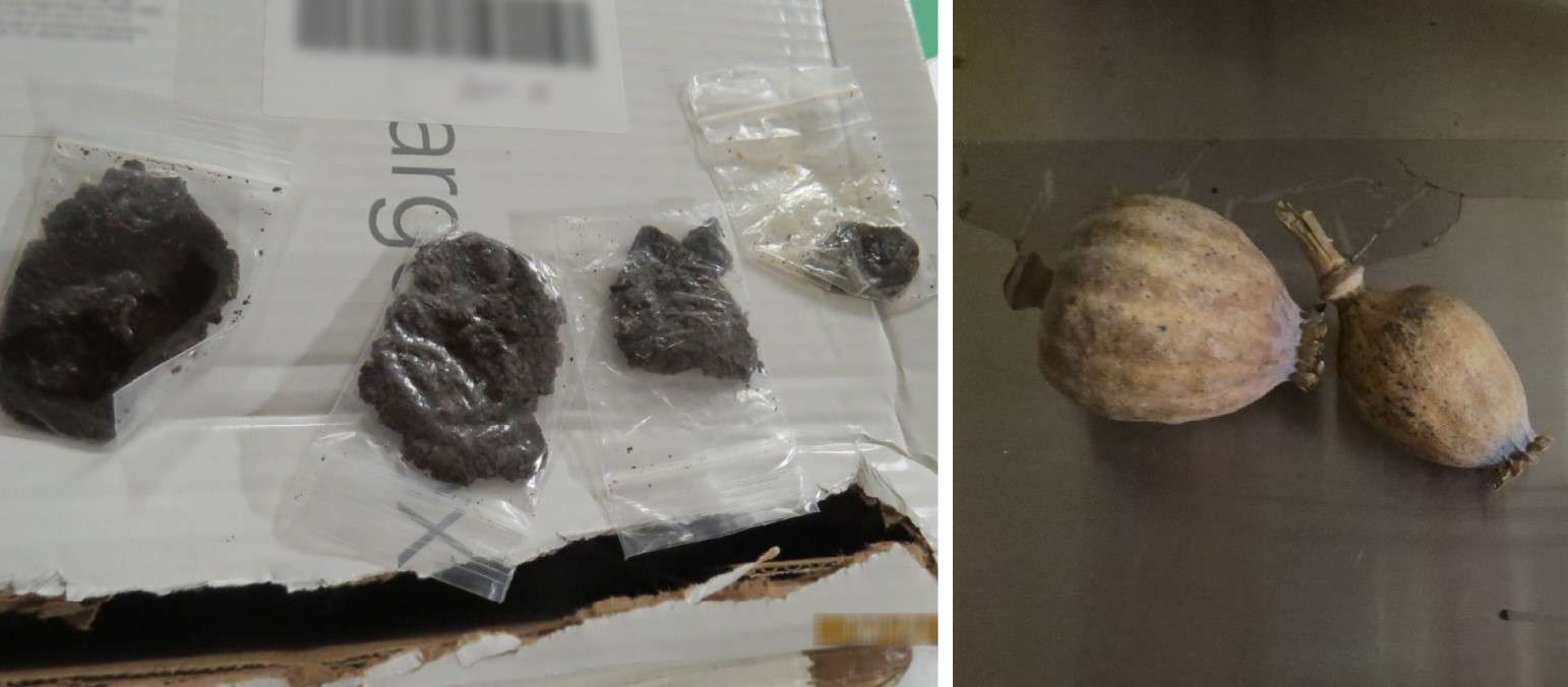 CBSA officers seized 6.27 kilograms of suspected opium pods, 30 grams of suspected heroin, and two vials of suspected steroids.