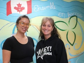 Lo-Anne Chan, left, and Tanya Tamilio from Sarnia’s francophone community centre believe a local initiative will honor the 50th anniversary of the Franco-Ontario flag. Photo by Paul Morden /The Observer