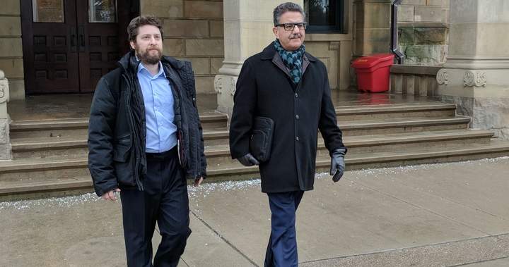 Mark Phillips, the man accused in a baseball bat attack in St. Thomas, leaves the Elgin County Courthouse with his lawyer Steven Sturka. 980 CFPL